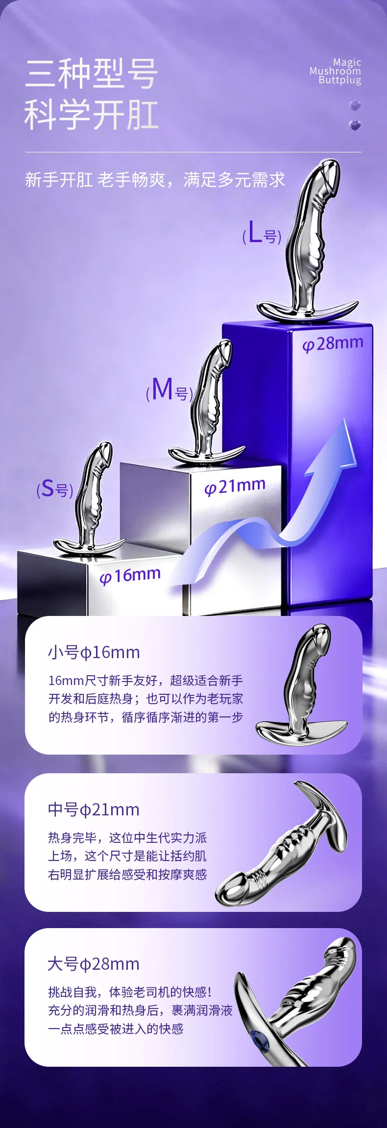 Đừng bao giờ hài lòng với sự đơn điệu! Trong thế giới của sự sung sướng, việc khám phá và nâng cấp bản thân là chìa khóa để chạm tới những đỉnh cao phê đỉnh mới. Tại quangminhshop.net, chúng tôi mang đến cho bạn siêu phẩm Plug INOX hình dương vật với 3 kích cỡ chuẩn mực, giúp bạn từng bước làm chủ mọi cơn lốc sảng khoái!