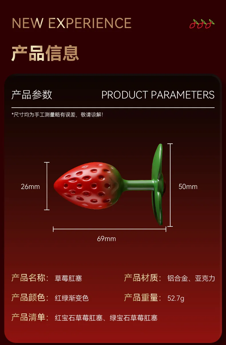 Không giống như những mẫu Plug truyền thống, Plug quả dâu sở hữu màu đỏ chín mọng nhờ lớp sơn tĩnh điện cao cấp. Kết hợp với phần đế gắn kim cương giả lấp lánh, nó trở thành một món trang sức sexy mời gọi bạn tình. Cảm giác nhìn thấy người phụ nữ của mình đeo “trái cấm” lấp lánh sẽ khiến phái mạnh kích thích mạnh và muốn chiếm hữu ngay lập tức.